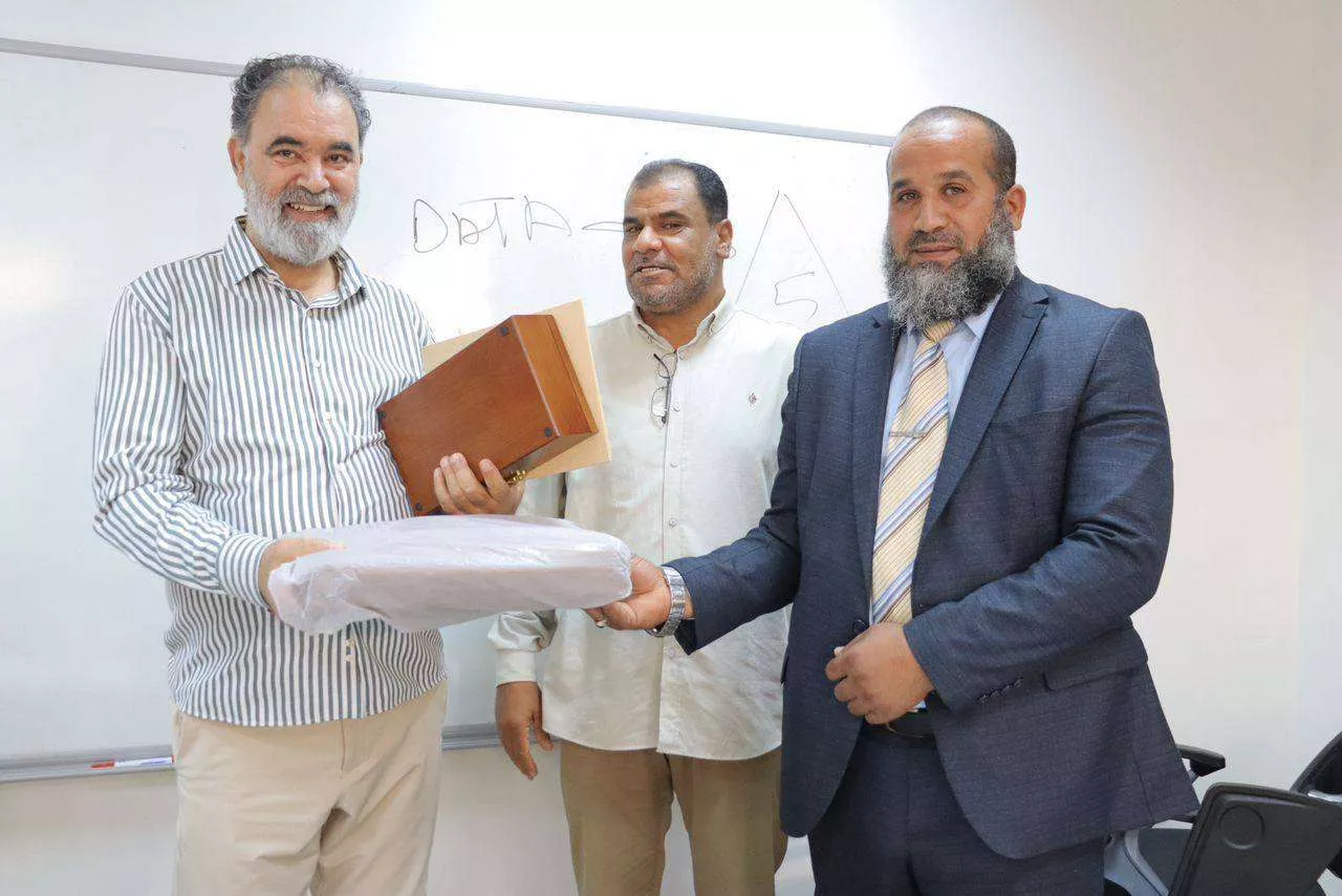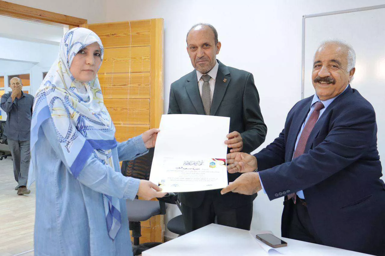 تخلل الحفل توزيع شهادات المشاركة على المتدربين وتكريم الدكتور شعبان امحمد فضل بمنحه شهادة شكر وتقدير ودرع الجامعة تقديراً لجهوده المتميزة في تقديم الورشة وتحقيق أهدافها.