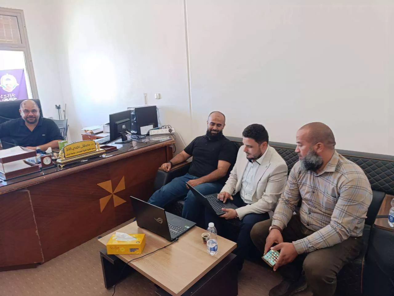 كان في الاستقبال كل من مدير مركز المعلومات والتوثيق بجامعة المرقب، وعميد كلية تقنية المعلومات، وعدد من أعضاء هيئة التدريس والمهندسين بالكلية.